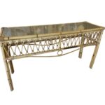 SOLD Vintage Tropical Palm Beach Rattan Console Sofa Table Glass Top