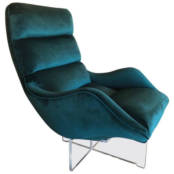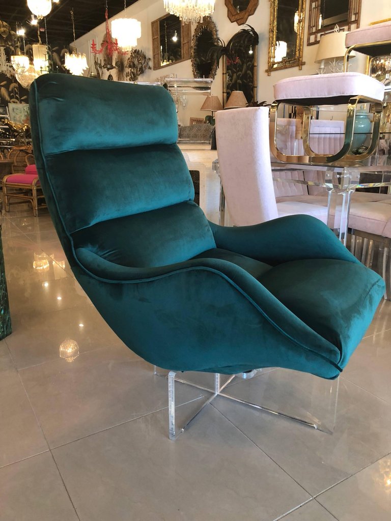 SOLD Vintage Vladimir Kagan Lucite Swivel Lounge Chair Green Velvet