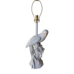 Amazing Palm Beach tropical vintage Italian white ceramic parrot bird table lamp. No chips or breaks. This has been newly wired and has all new brass hardware. Height to socket 23″