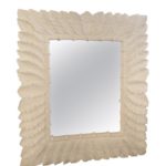 Lovely oversized vintage faux bamboo and tropical palm tree leaves leaf wall mirror. Newly lacquered in a white gloss.