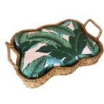 SOLD Vintage Wicker Basket Dog Pet Bed Tropical Leaf Upholstery LG