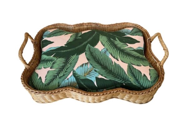 SOLD Vintage Wicker Basket Dog Pet Bed Tropical Leaf Upholstery Sm