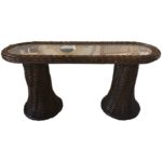 SOLD Vintage Wicker Double Pedestal Swirl Base Console Table Glass Top