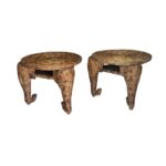 The most amazing vintage pair of wicker elephant side end tables. I have never seen anything like these before! Fabulous large glass marble eyes. Original finish. Dimensions: 20 H x 28 W x 28 D. The top is 24 D.