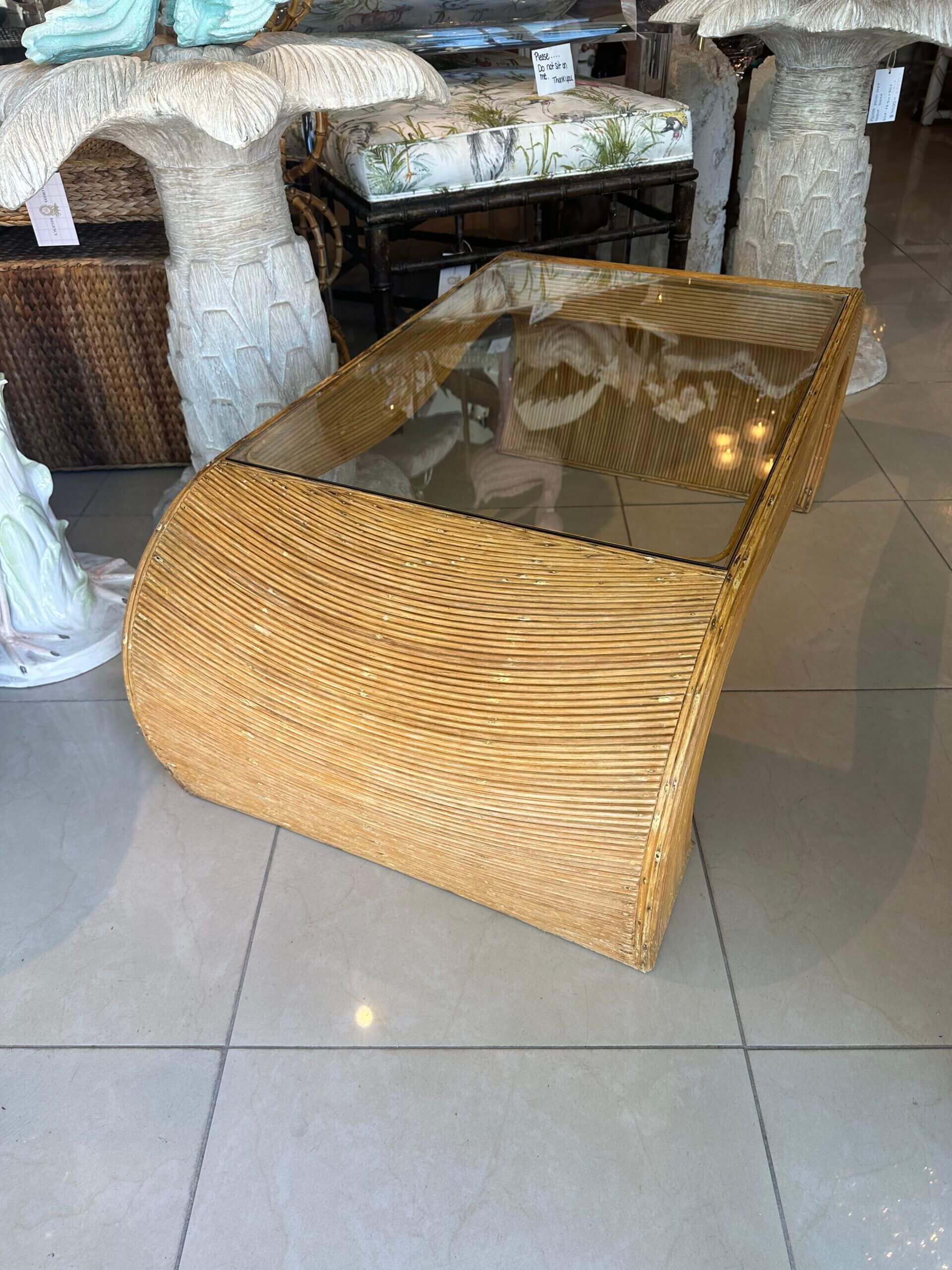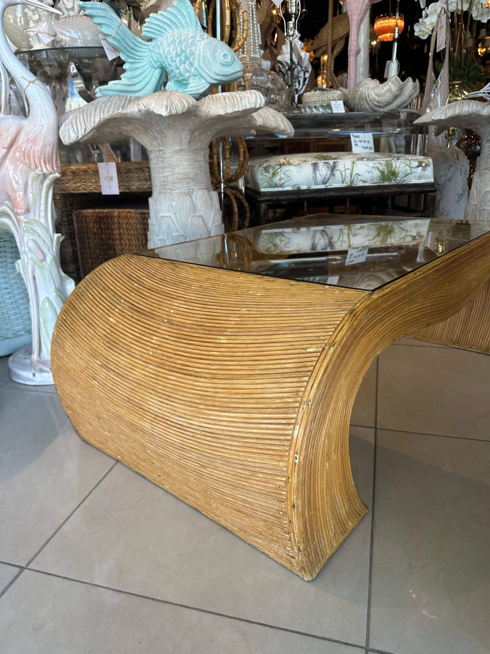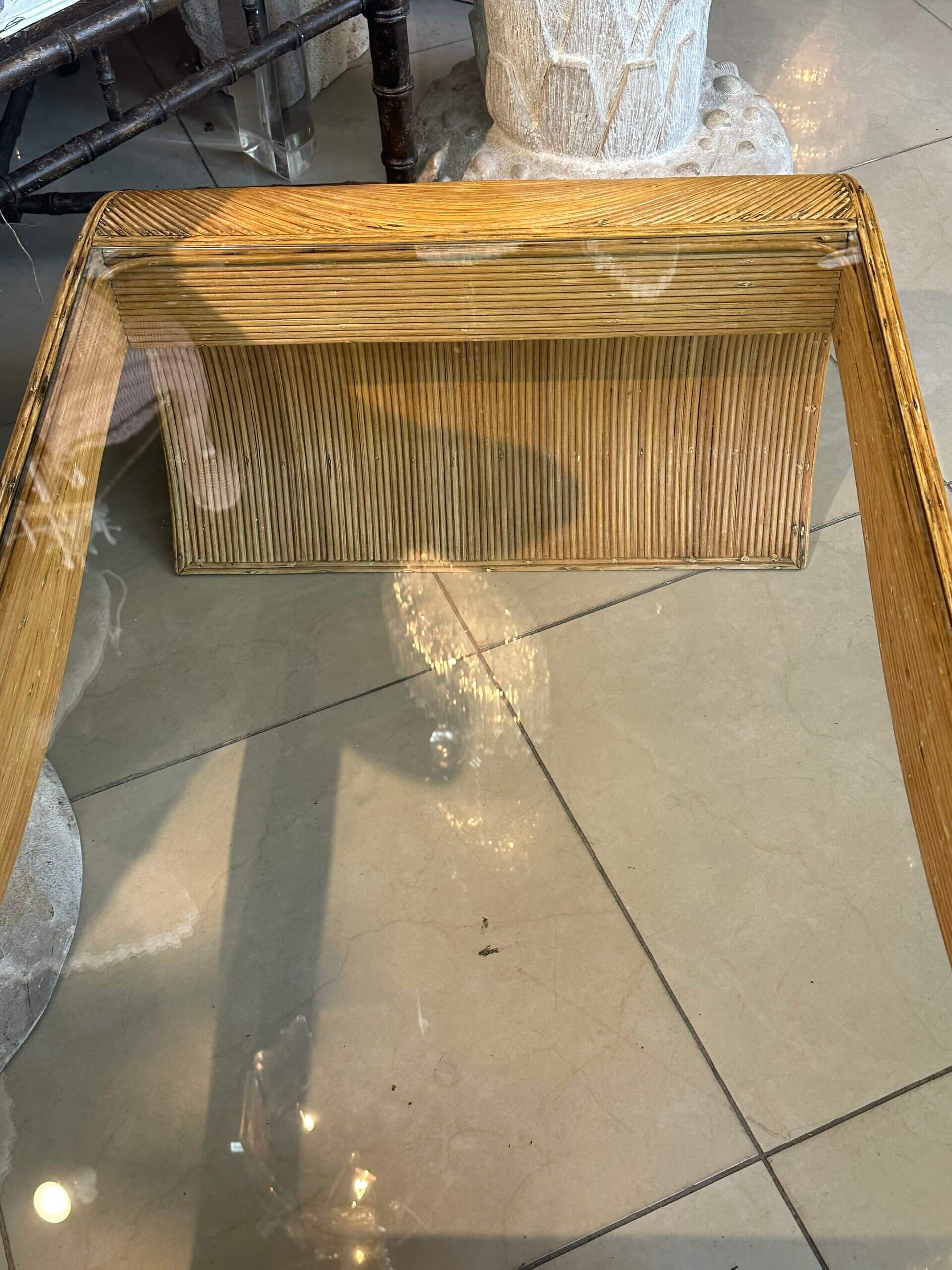 Vintage Pencil Reed Rattan Bamboo Scroll Ming Coffee Cocktail Table New Glass