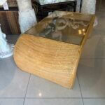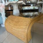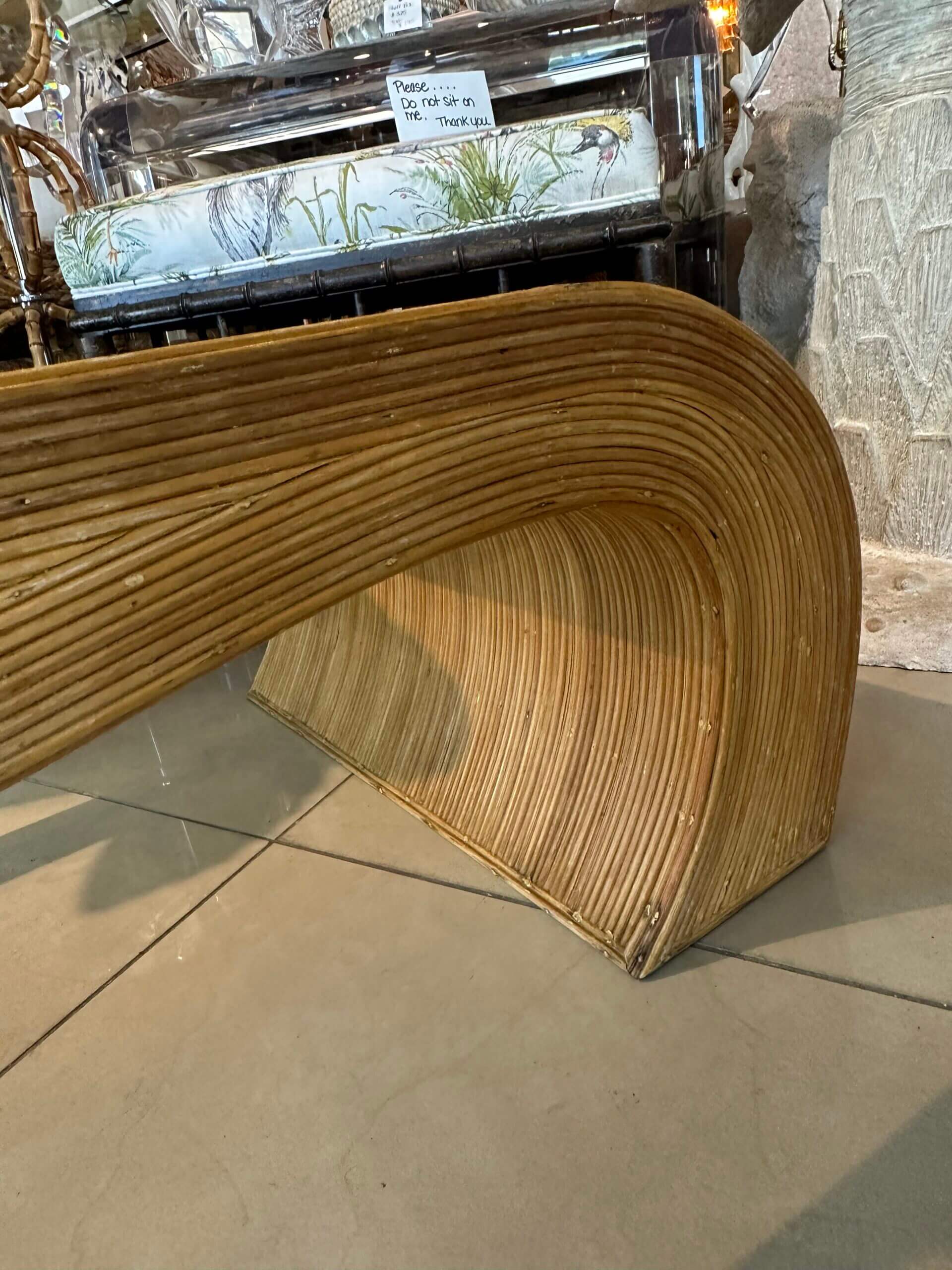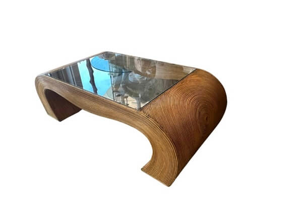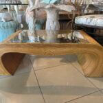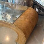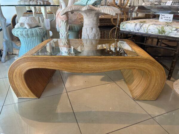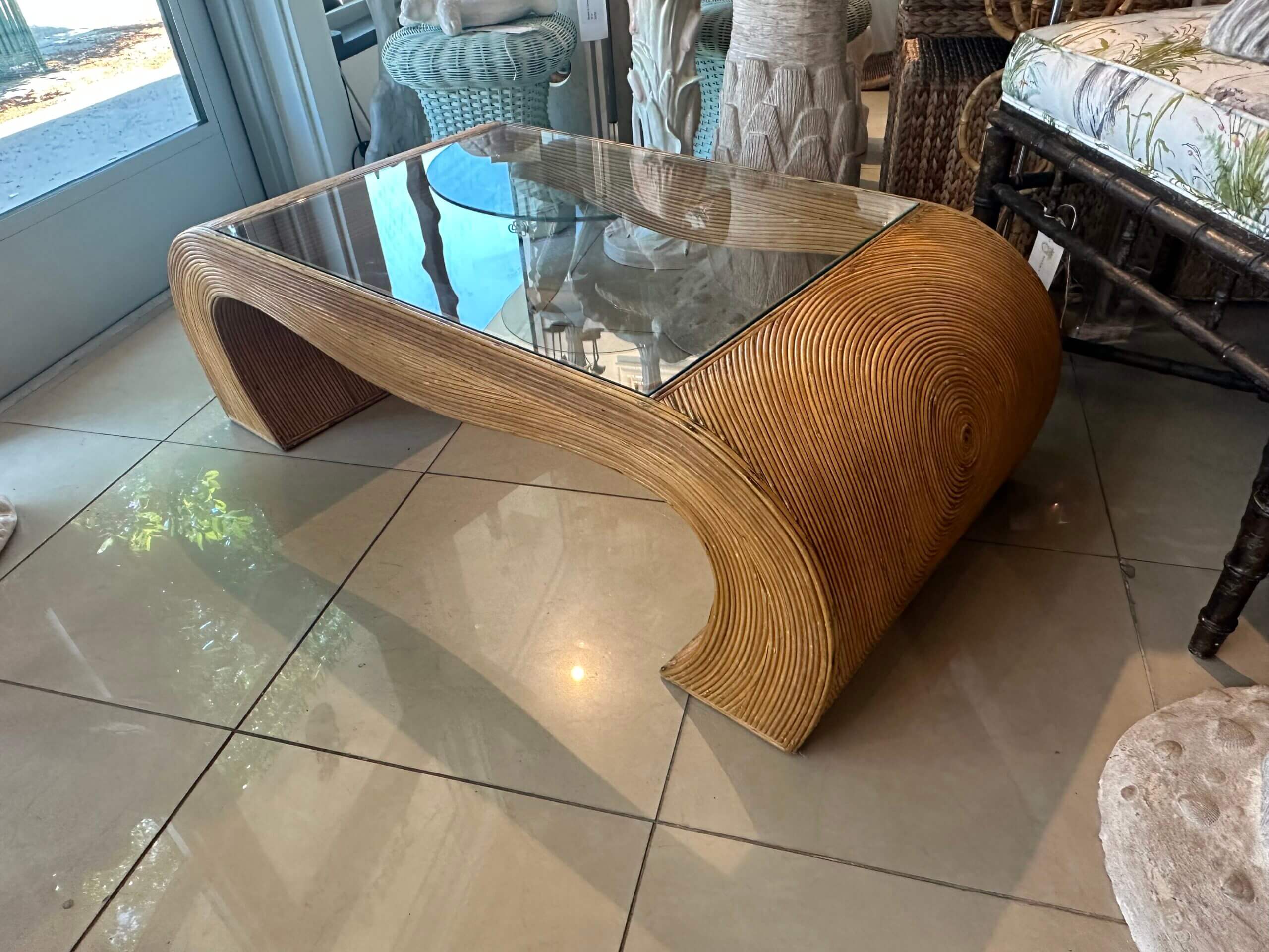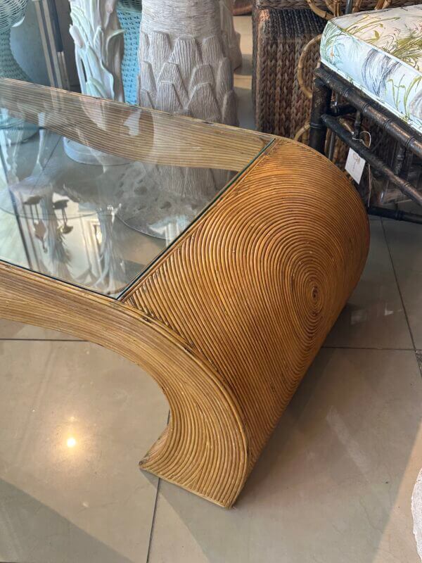 Vintage Pencil Reed Rattan Bamboo Scroll Ming Coffee Cocktail Table New Glass