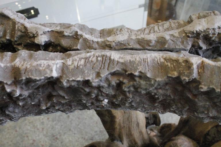 In the style of Paul Evans heavy cast metal bronze coffee table. This weighs an absolute ton! Glass top not included.