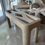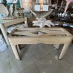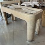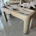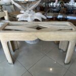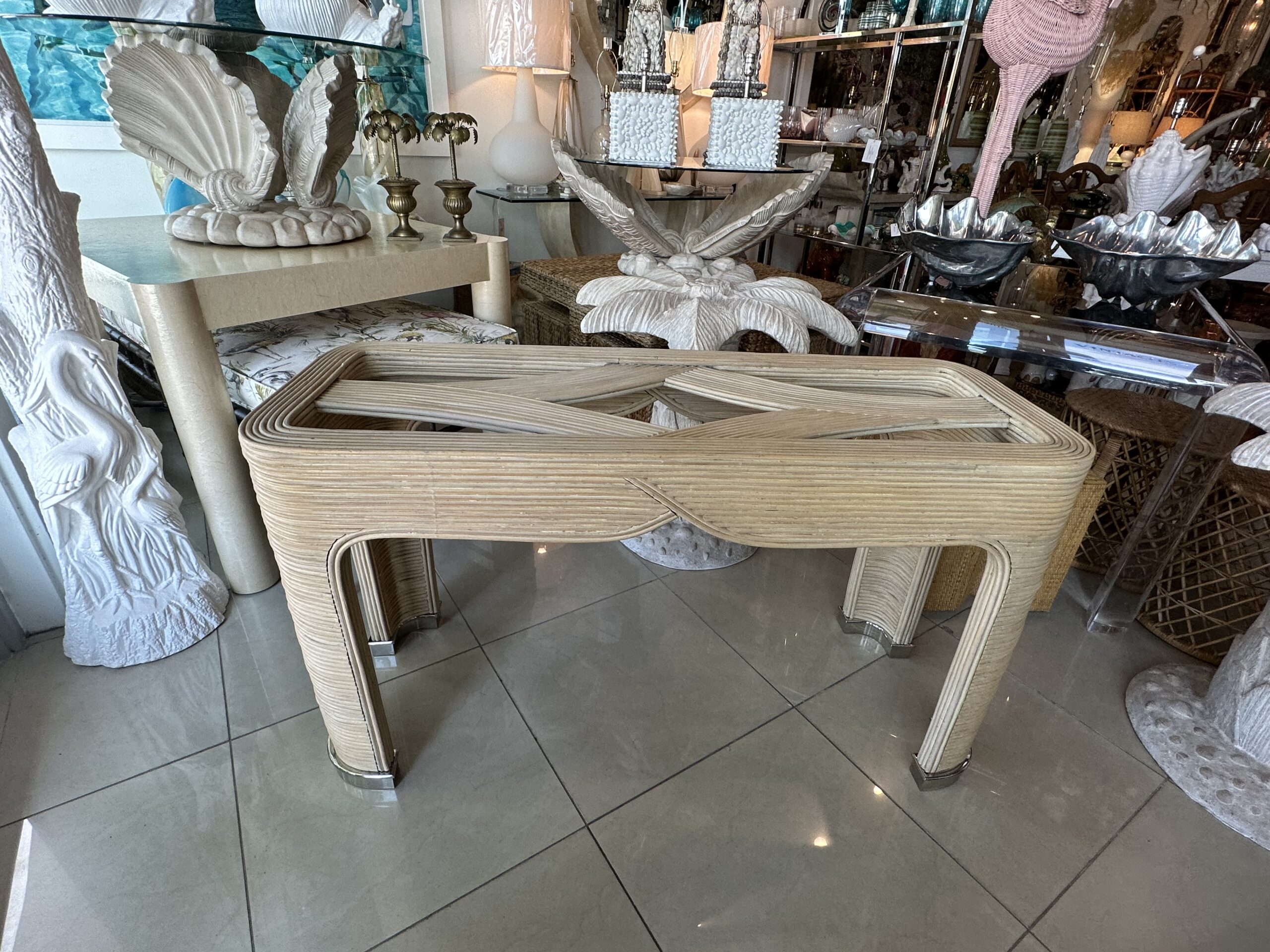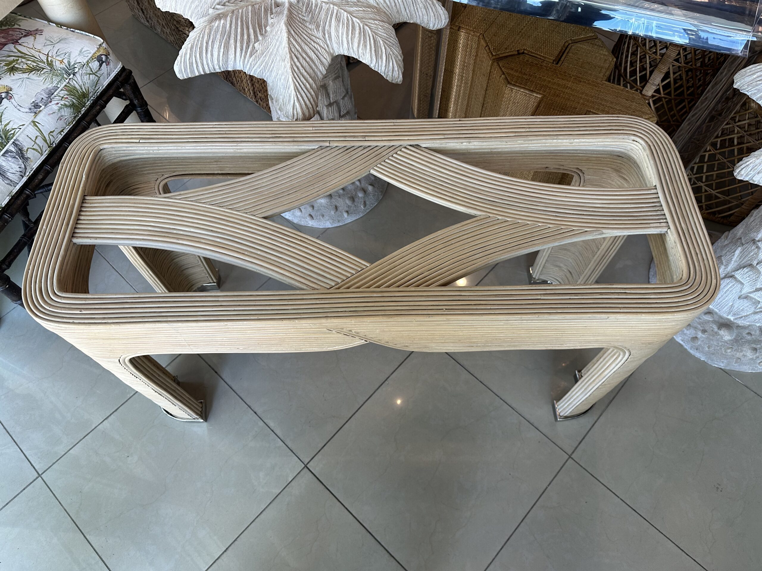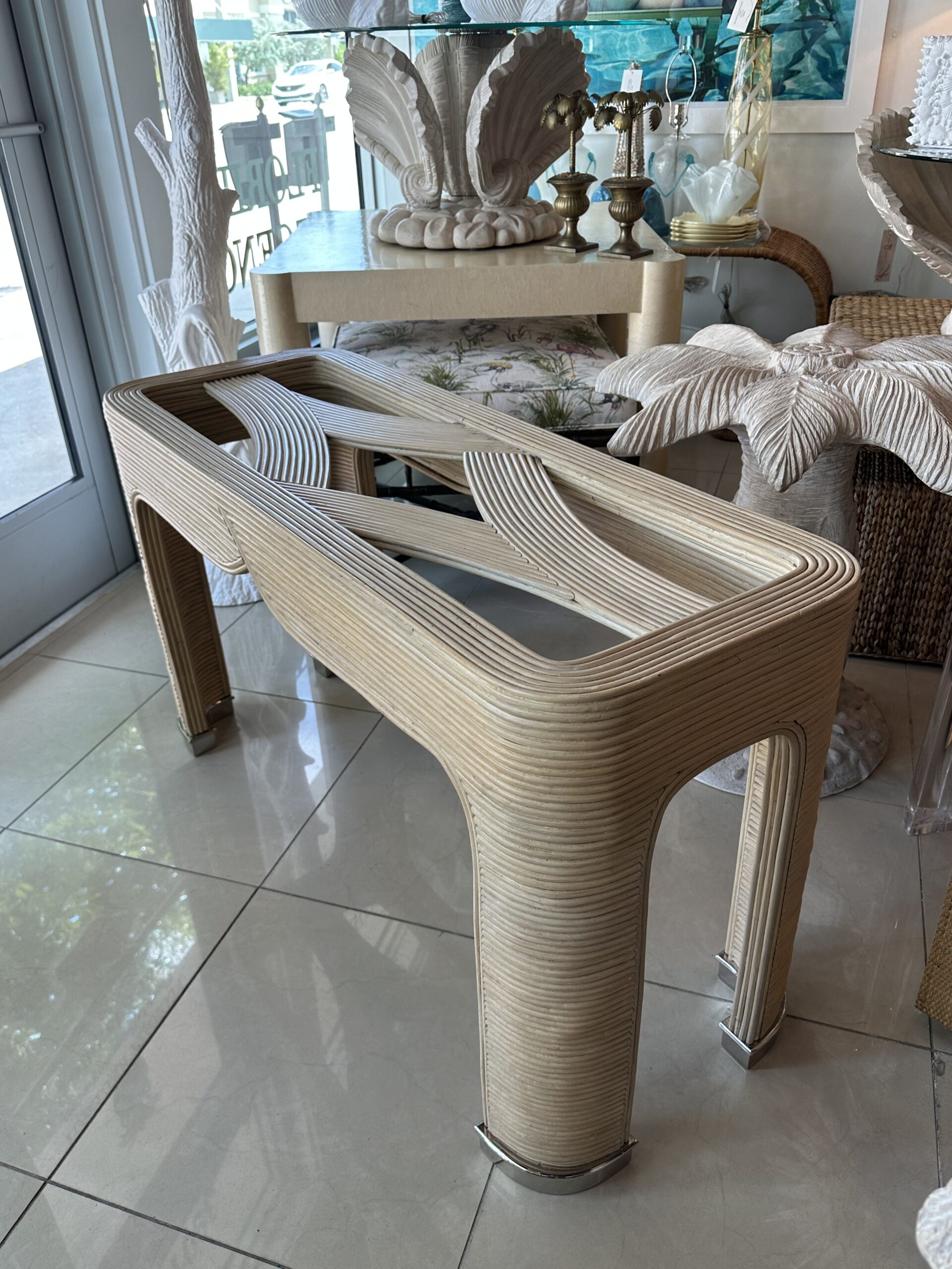 Vintage Palm Beach Pencil Reed Rattan Bamboo Console Sofa Table Brass Feet
