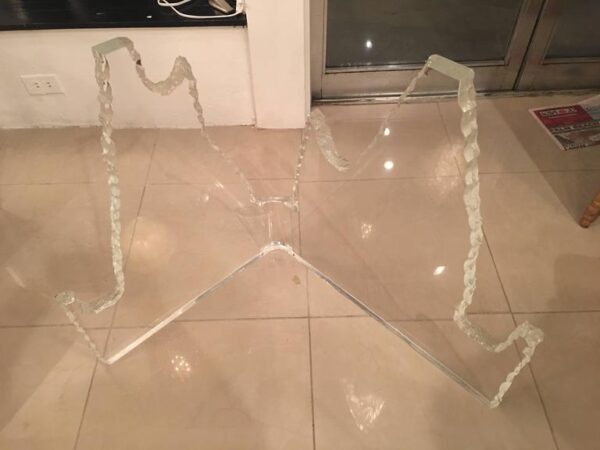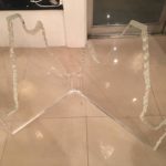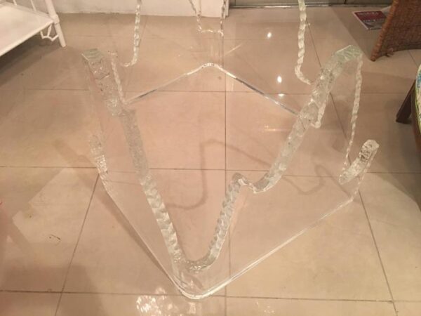 Vintage pair of Lucite glacier, iceberg style dining table or office desk base. Glass top not included. In the manner of lion in frost.