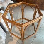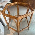 Vintage rattan dining table or game table base. You will need to add your own glass top. No damage or issues. Dimensions: 29.5 H x 33 D.