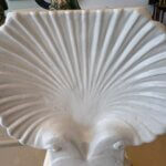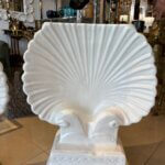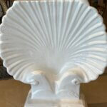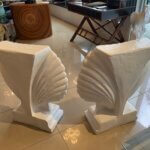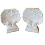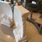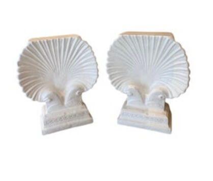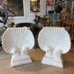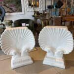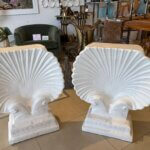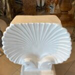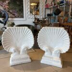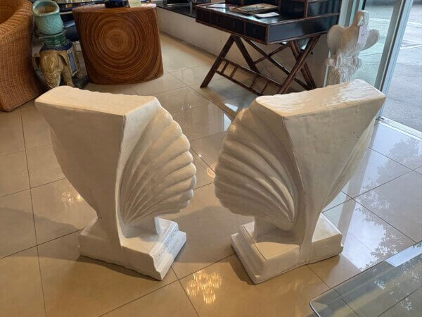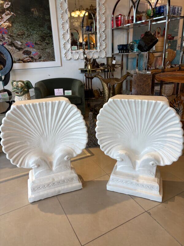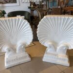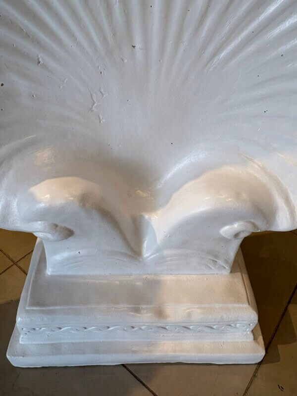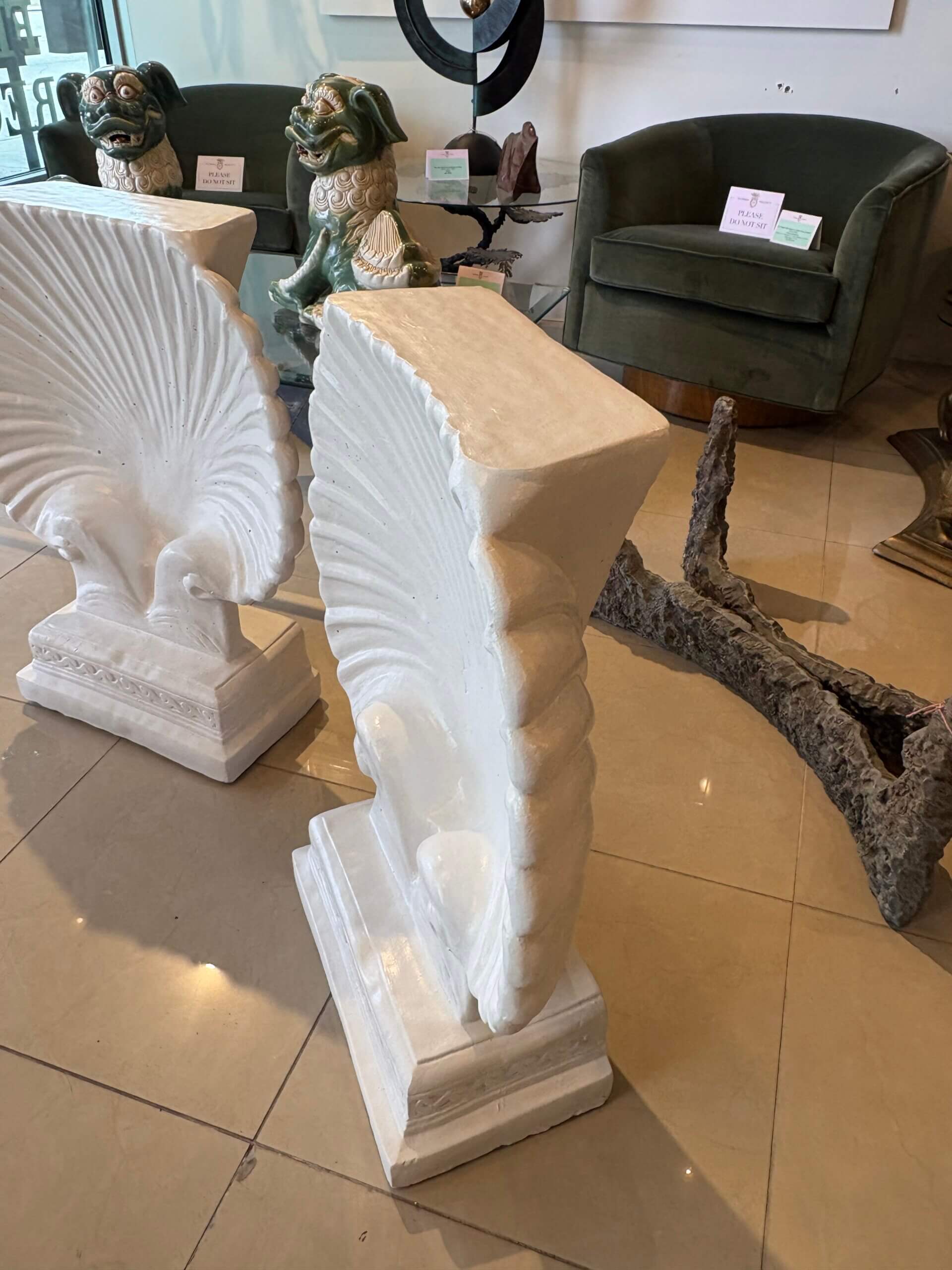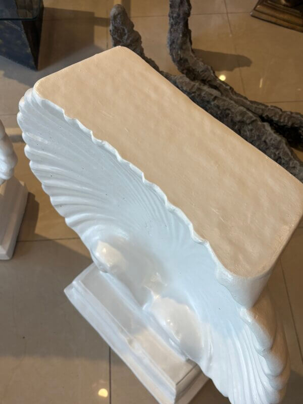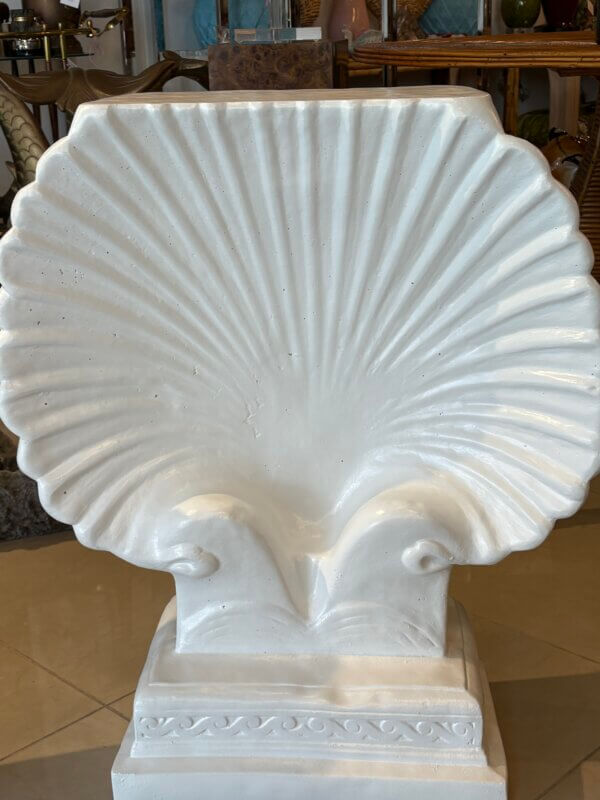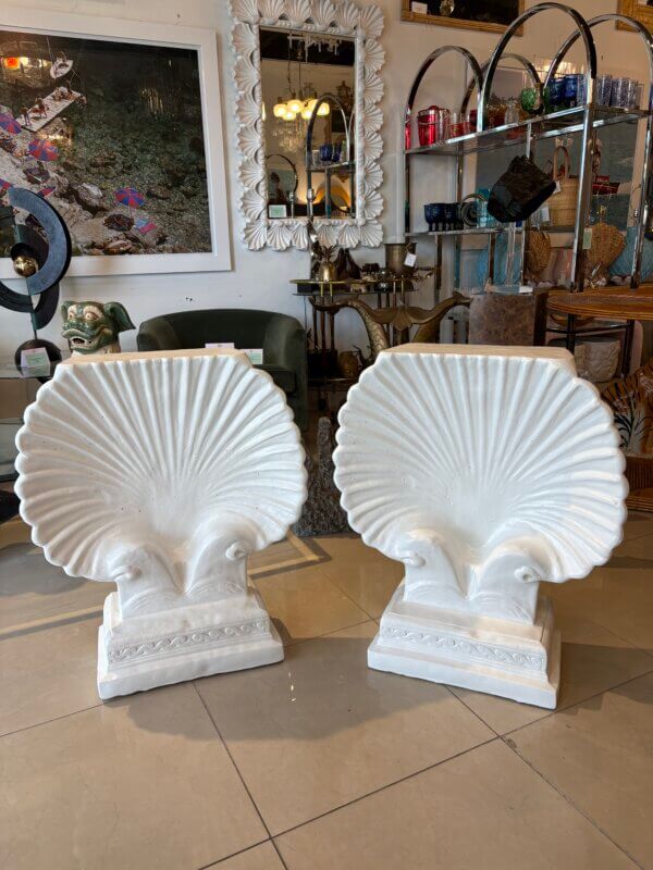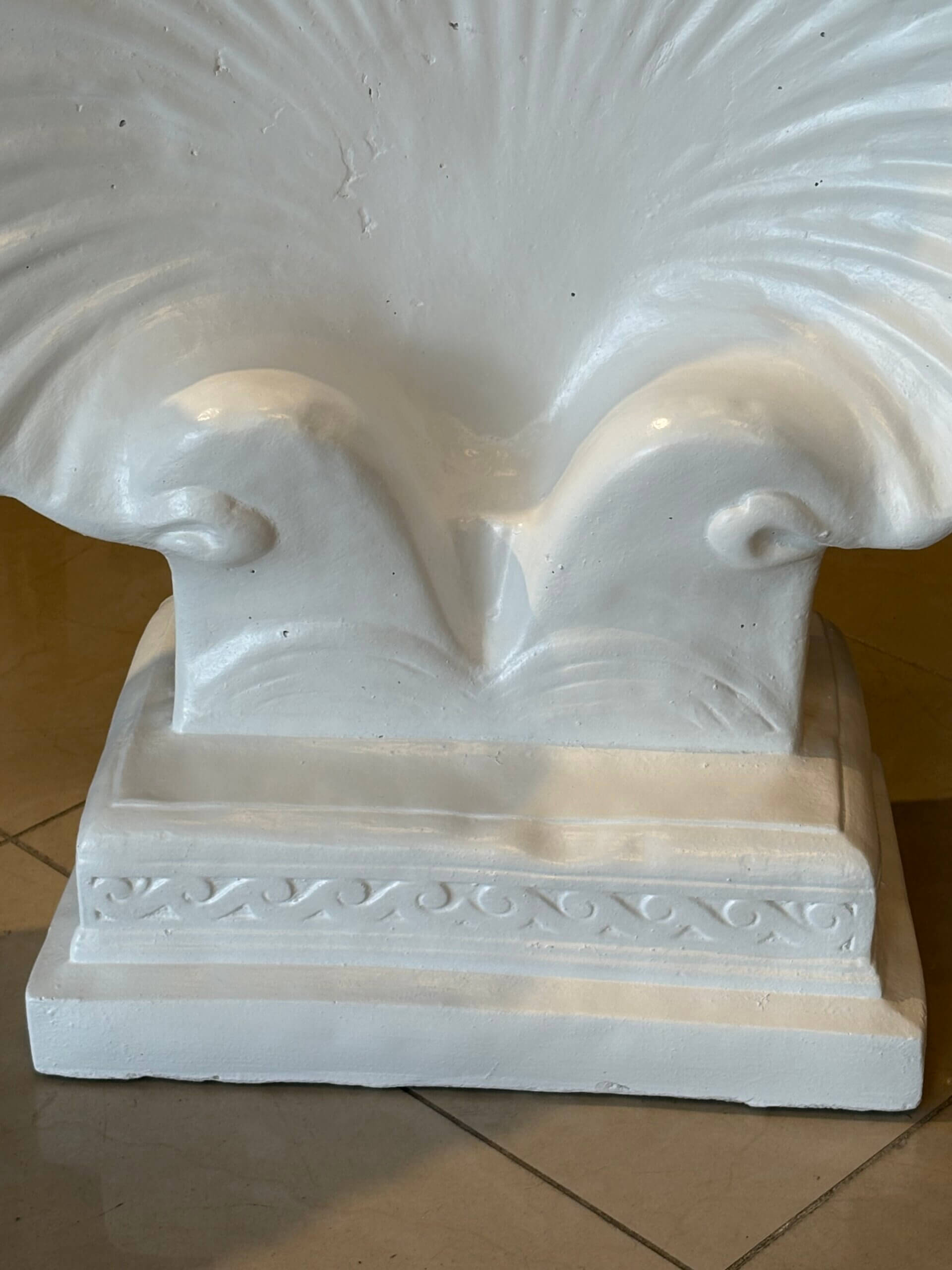 Vtg. Pair Palm Beach Concrete Scalloped Shell Seashell White Dining Table Bases