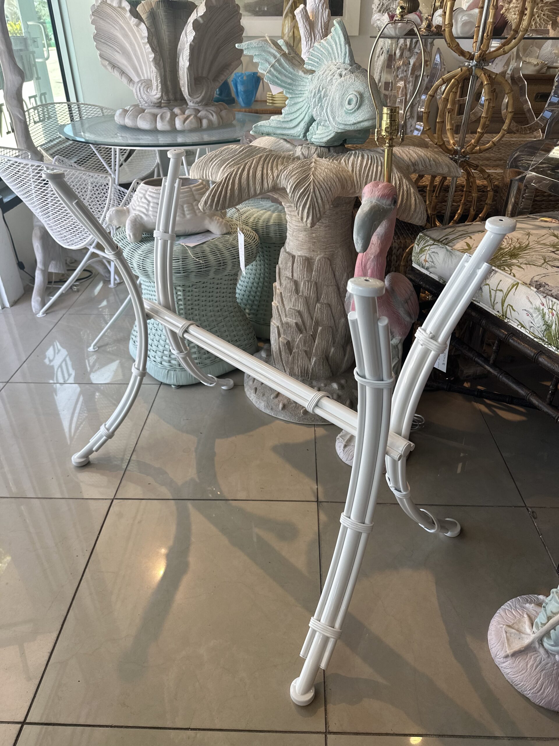 Tags: console table base, desk, dining table base, faux bamboo, indoor outdoor, Metal, patio, White, x base