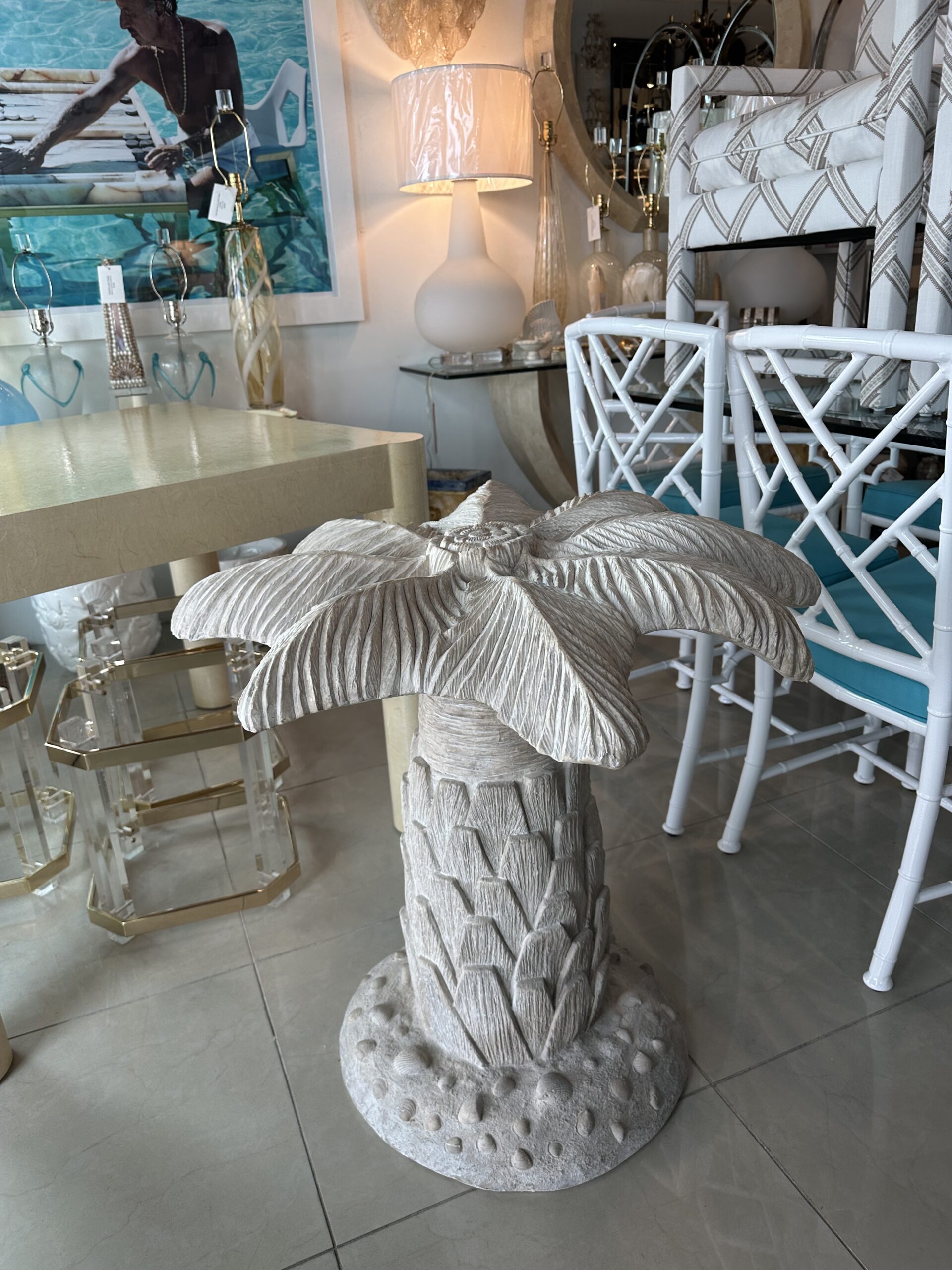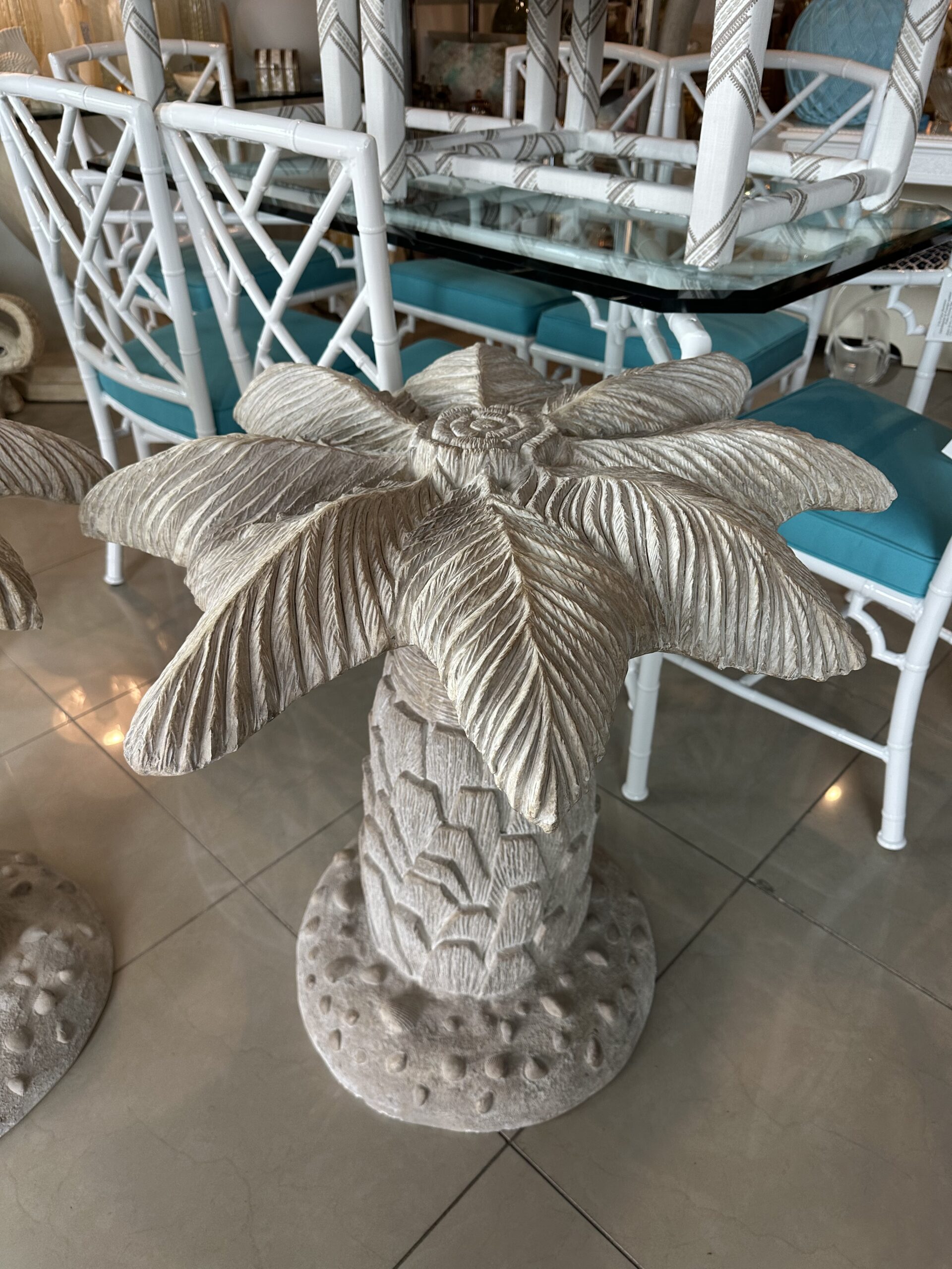Vintage Plaster Palm Tree Leaf Table Dining Table or Center Entry Base Pair Available