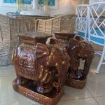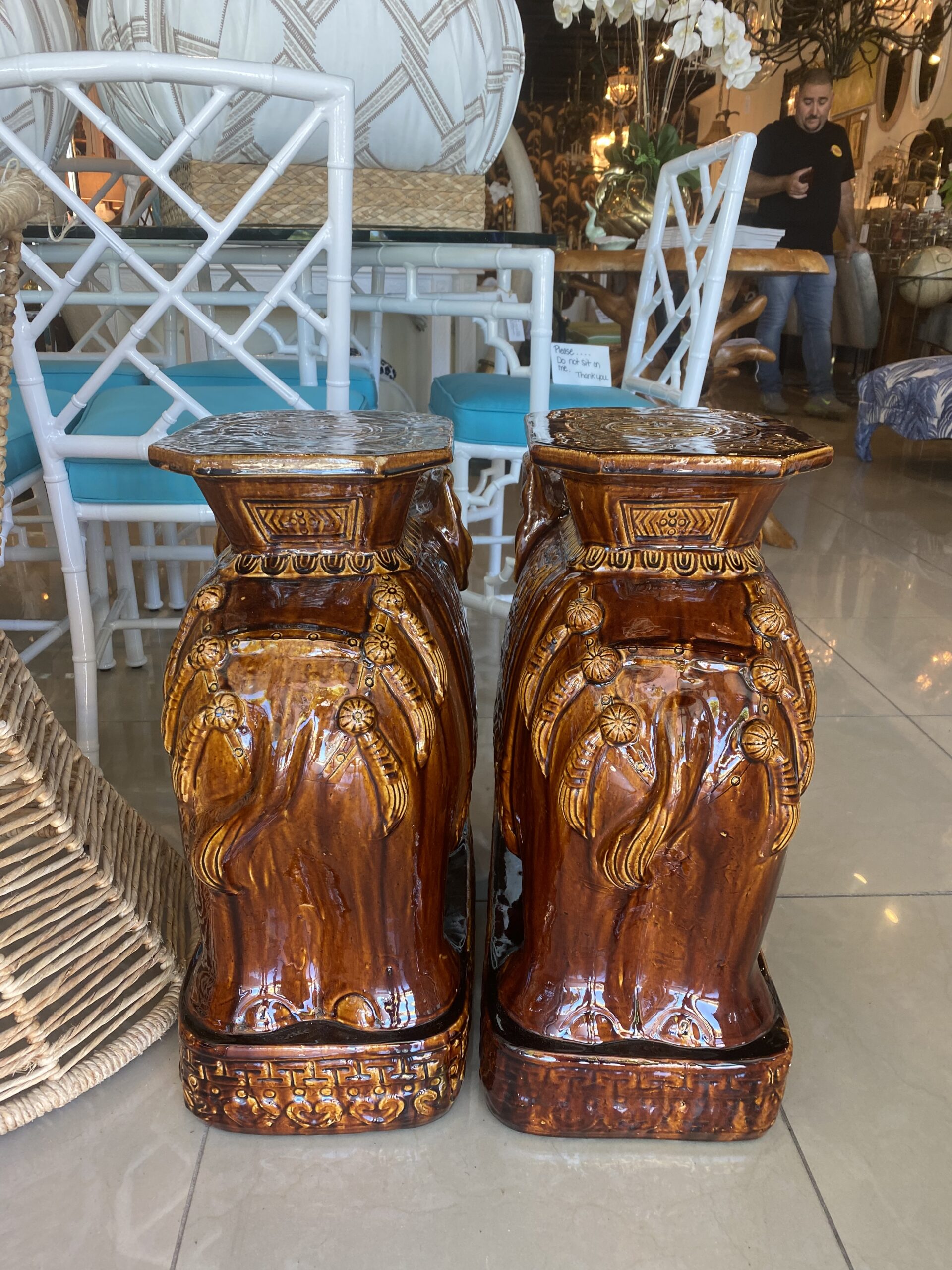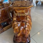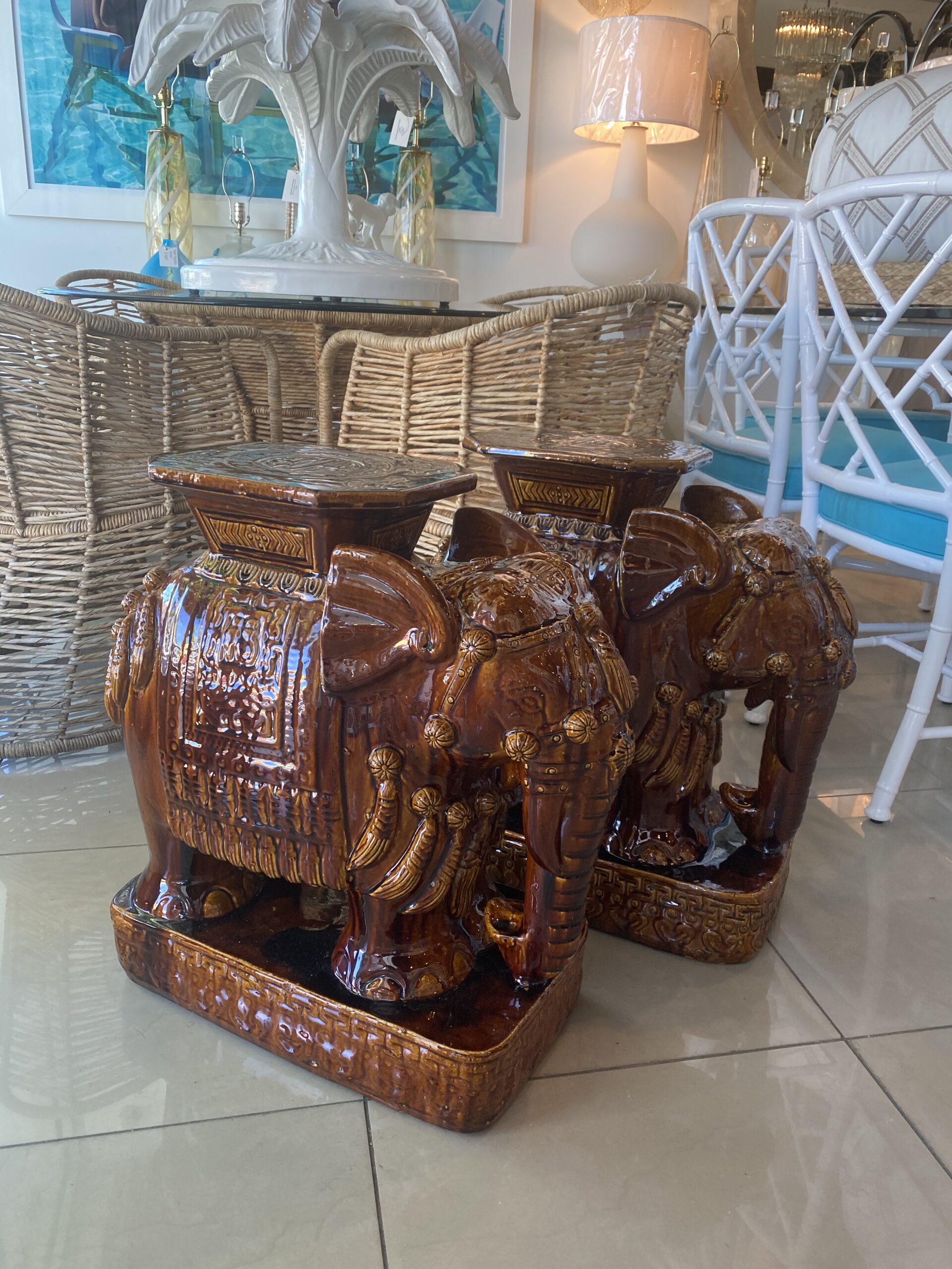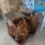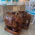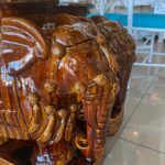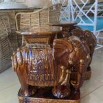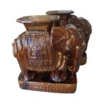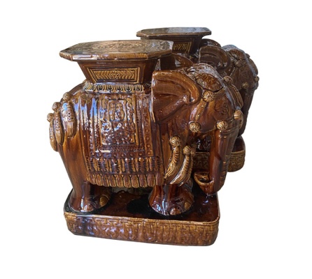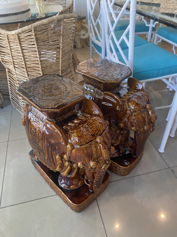 Vintage Pair Brown Glazed Elephant Garden Stands Stools Benches Drink Tables