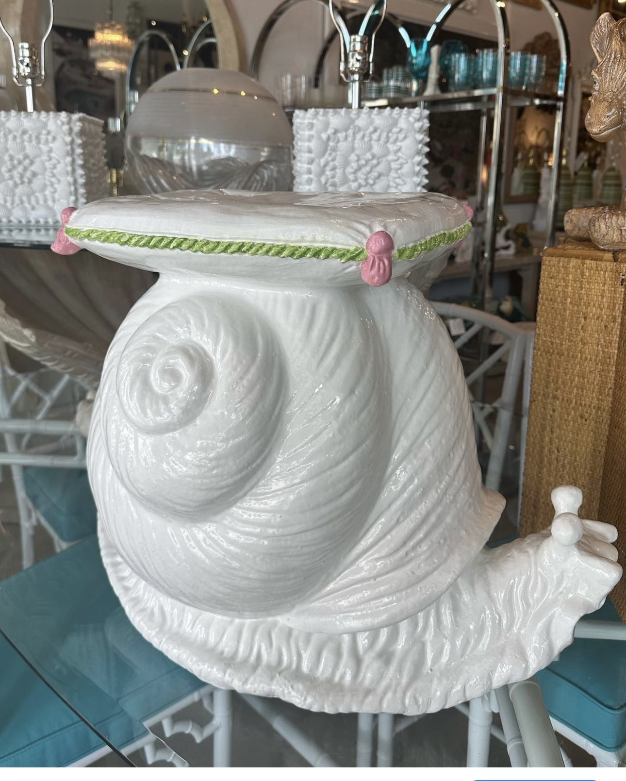 Vintage Hand Painted Palm Beach Snail Garden Stand Side End Drink Table