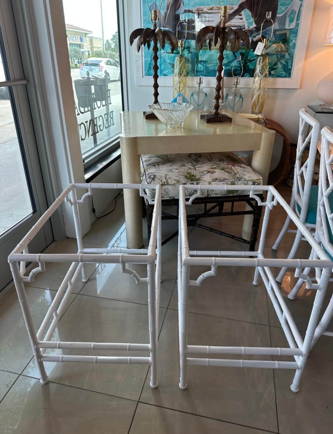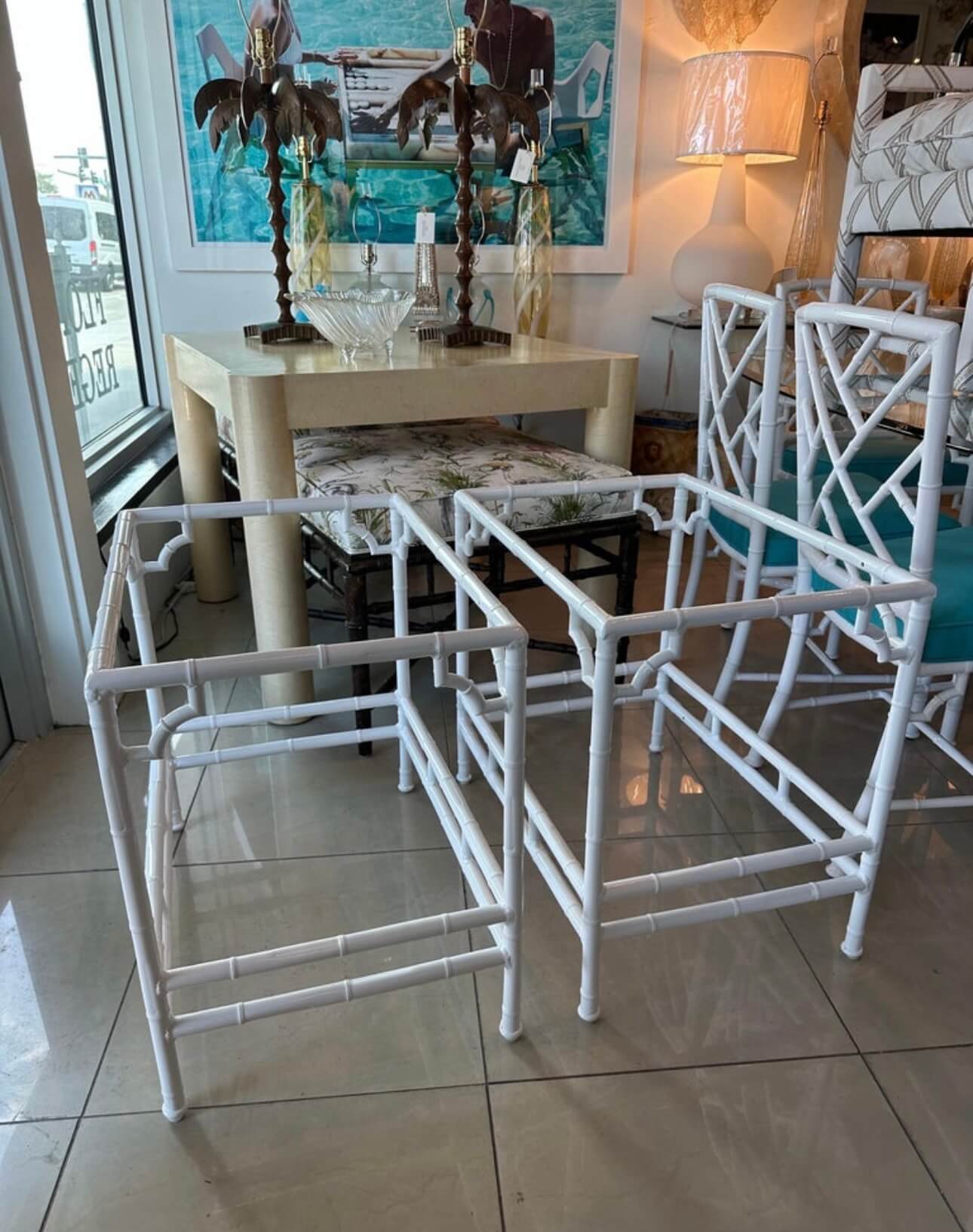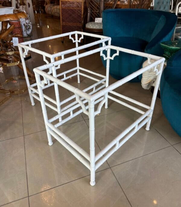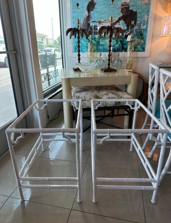 Tags: brown jordan, End tables, faux bamboo, garden, Metal, newly powder coated white, outdoor, pair set, patio, side tables