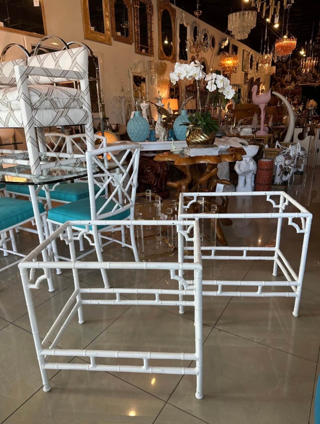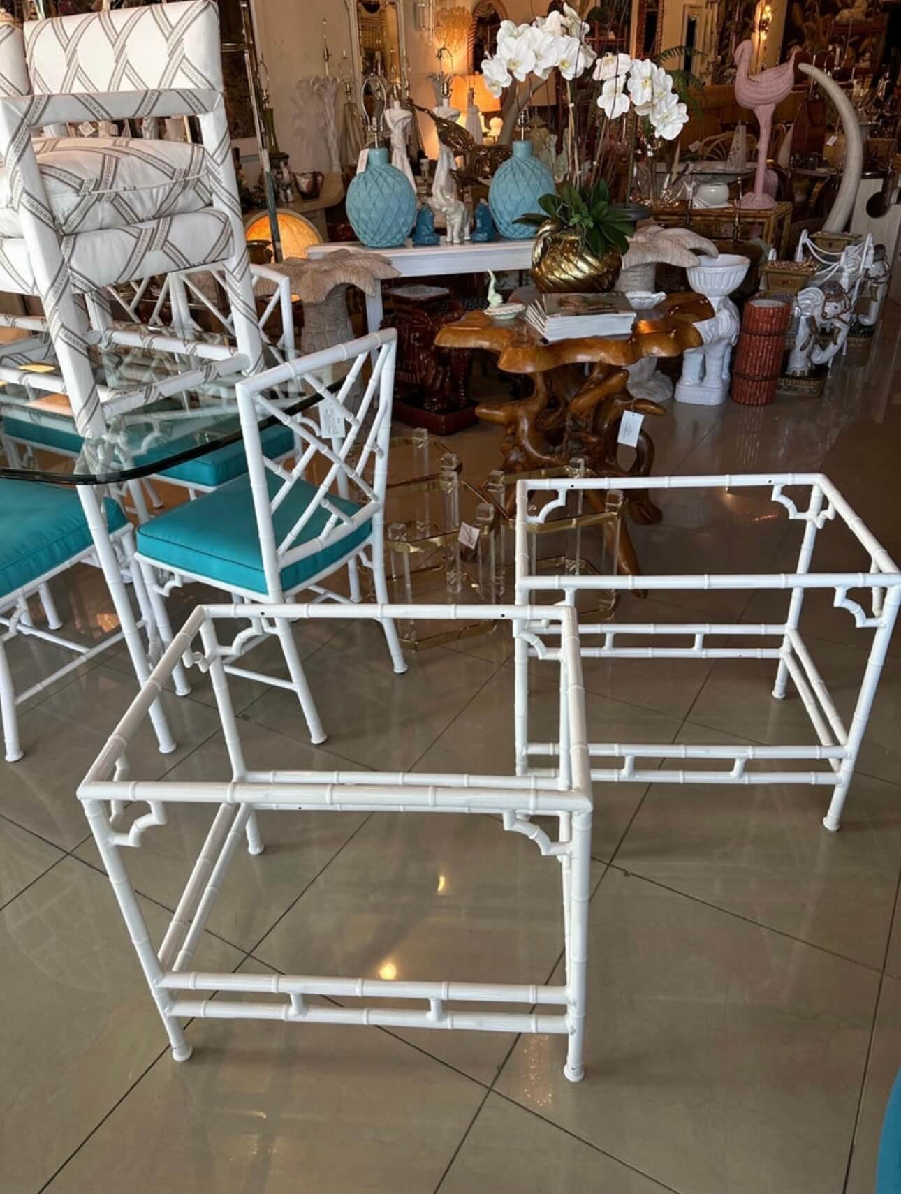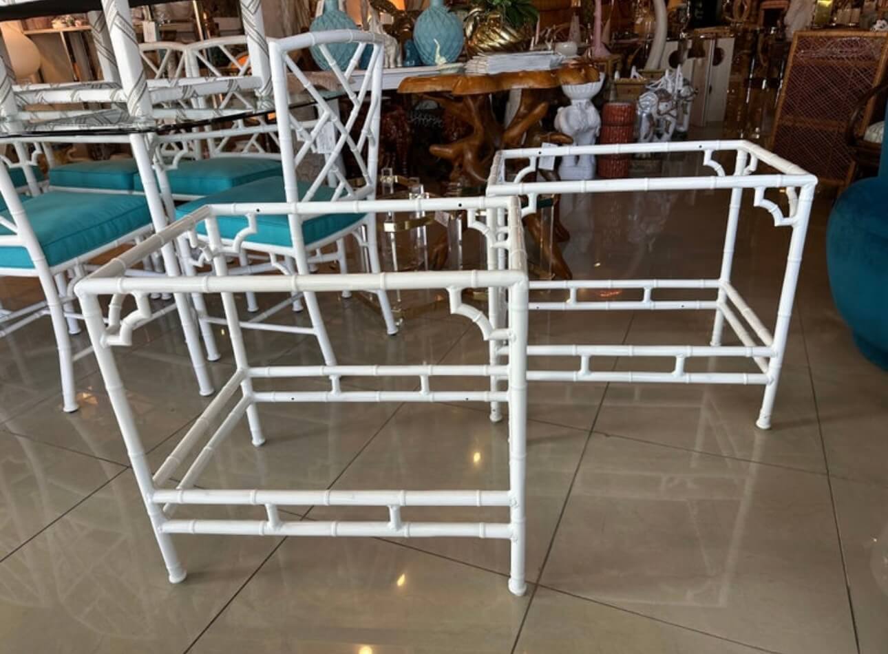 Tags: brown jordan, End tables, faux bamboo, garden, Metal, newly powder coated white, outdoor, pair set, patio, side tables